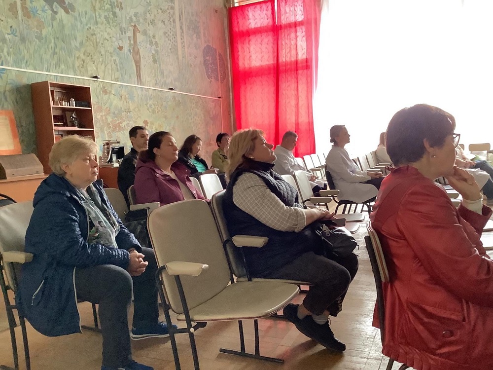 Слушателями оказались пациенты разных возрастов, а так же их родственники, всего около 26 человек. ГВС по медицинской профилактике Екатерина Владимировна Тимофеева и врач-кардиолог Таисия Юрьевна Буканова, доступным языком объяснили необходимость ежедневного контроля артериального давления, регулярного приема лекарств и своевременного визита к врачу. Напомнили, в каких случаях необходимо вызвать скорую помощь. Были розданы информационные материалы, разработанные специалистами центра общественного здоровья и медицинской профилактики.