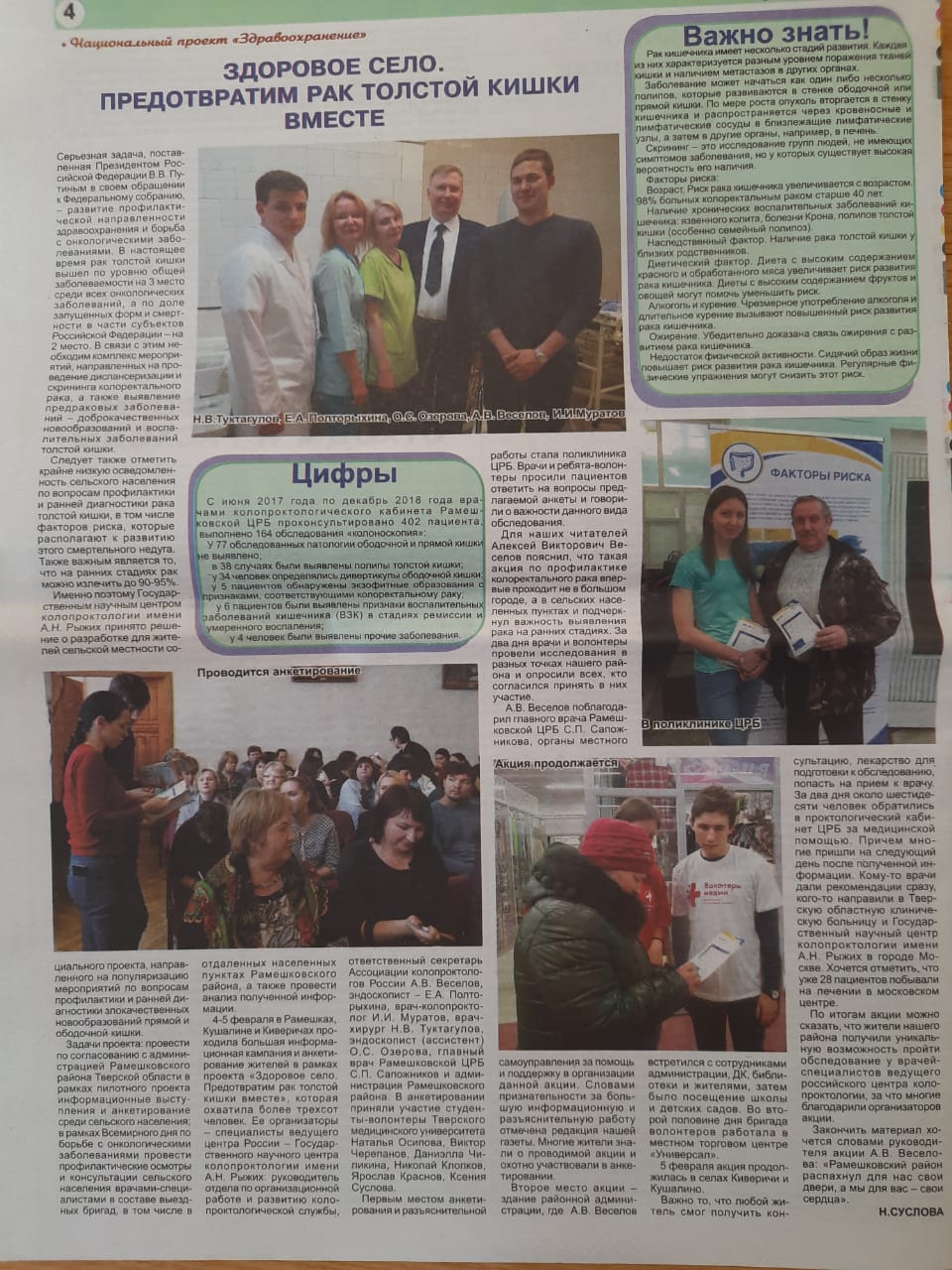 Более 400 штук информационных материалов передано для распространения при проведении профилактических осмотров. В центральной больнице главный врач продемонстрировал первые итоги чрезвычайно проекта по скринингу рака кишечника, который проводится вместе с федеральным центром. Также шел разговор о продвижении проекта бережливой поликлиники и расширении кабинета медицинской профилактики.