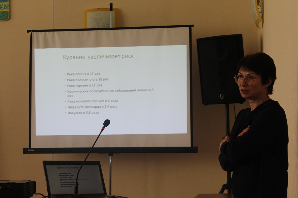 27 апреля в Администрации города Кимры состоялся конструктивный разговор в рамках заседания рабочих групп по реализации проекта о задачах реализации проекта двух муниципальных образований. Присутствовало более сорока специалистов из разных сфер деятельности. Елена Андреевна Низова сделала часовую презентацию о повышении мотивации на здоровый образ жизни. Передано более 500 шт информационных материалов в помощь по отказу от табака, алкоголя, профилактике сердечно-сосудистых заболеваний.