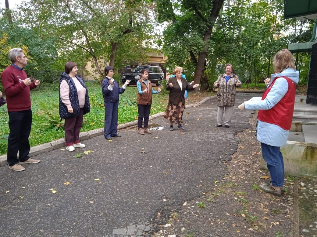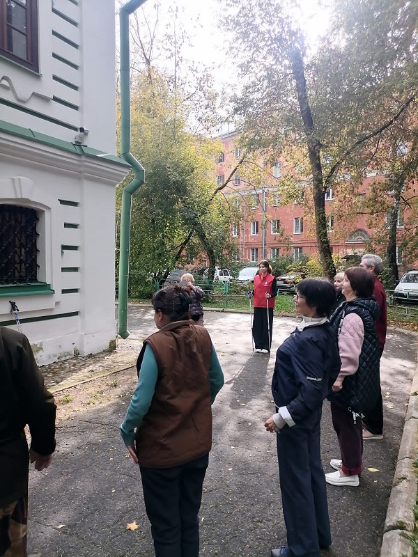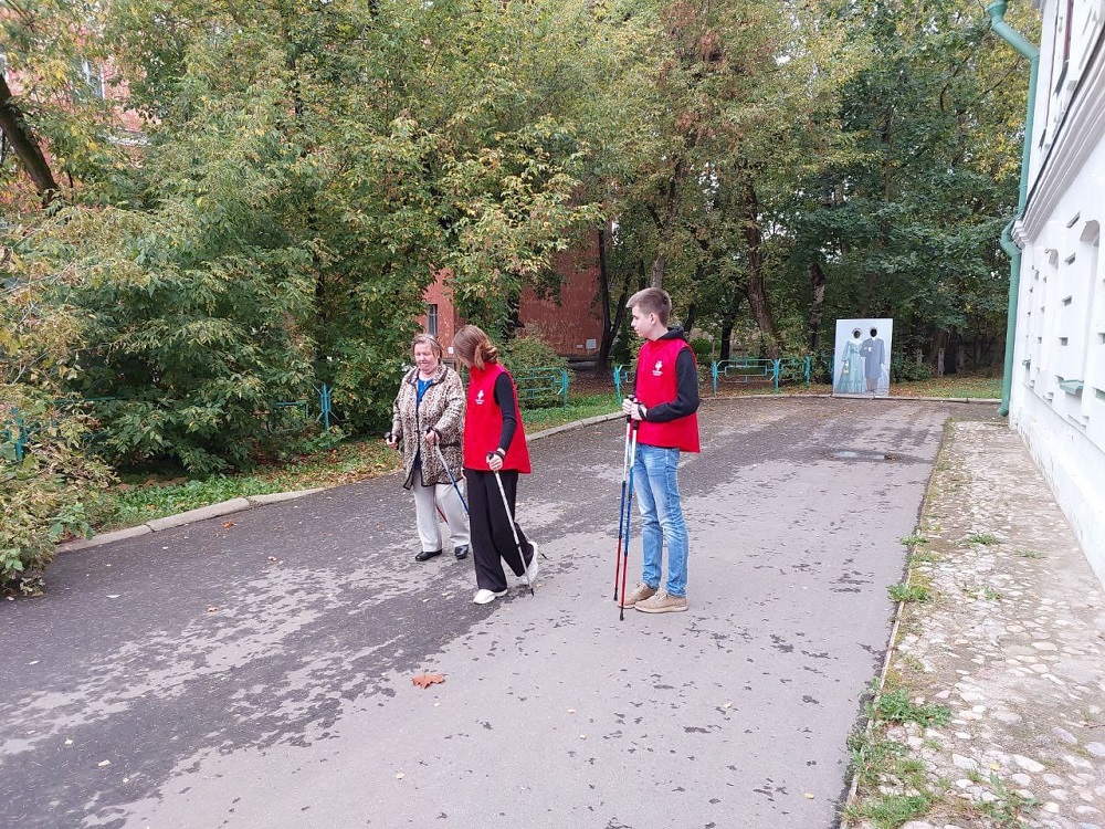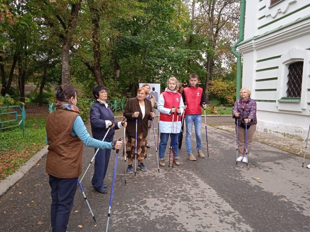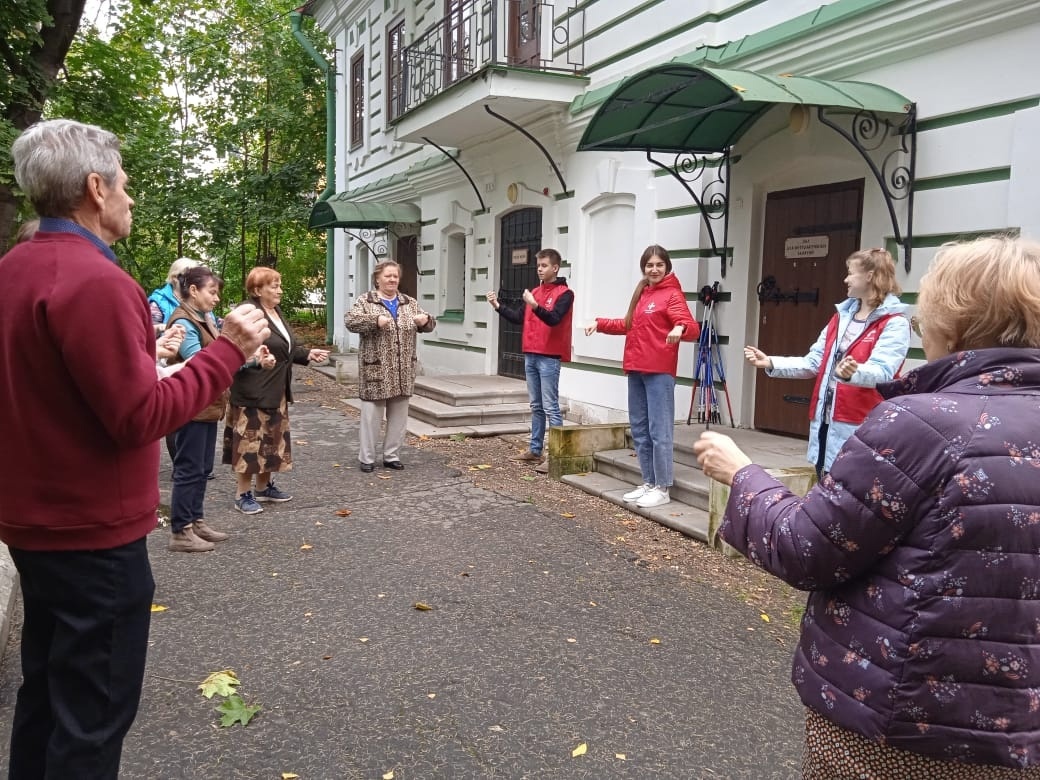 В завершение встречи команда «Волонтёров-медиков» провела для участников разминку и мастер-класс по скандинавской ходьбе. Каждый смог не только узнать о правильной технике выполнения упражнений, но и попрактиковаться, пройдя маршрут по территории музея.