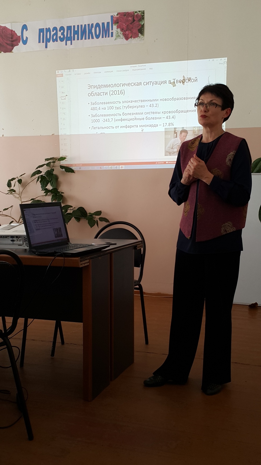 Для 25 специалистов медицинской организации- преимущественно среднего медперсонала, а также ВОП, проведен часовой семинар по современным подходам к профилактике неинфекционных заболеваний. Приходится констатировать, что мотивация медиков на предоставление грамотных рекомендаций по контролю поведенческих факторов риска НИЗ остается невысокой, как в рамках диспансеризации так и вне ее.
